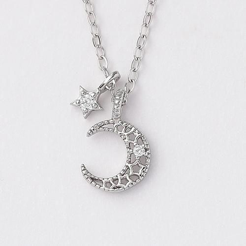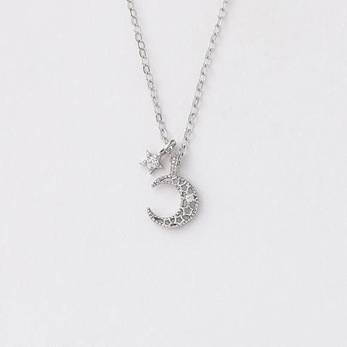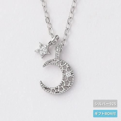 シンプルでかわいいデザインが素敵なネックレスです。シルバー925素材を使用しており、高い品質と輝きを持ち合わせています。キラキラのキュービックジルコニアがついた月と星のデザインは可愛らしく上品であり、誕生日プレゼントにぴったりです。