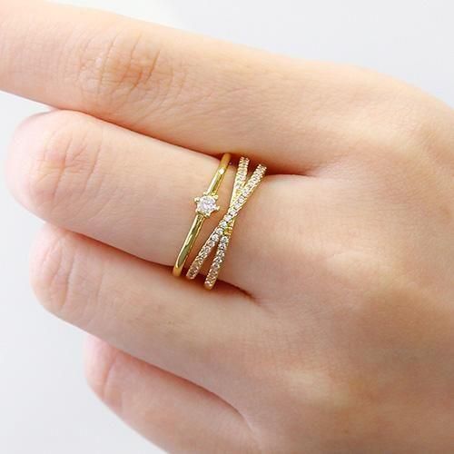 彼女への誕生日プレゼントに最適な『シンプル3連CZ 14Kコーティング フリーサイズ』