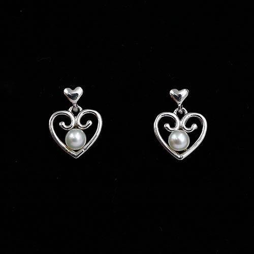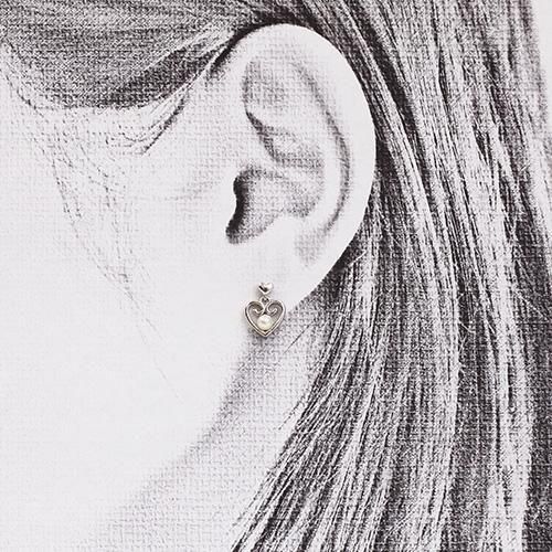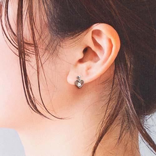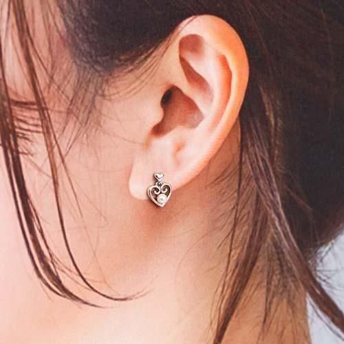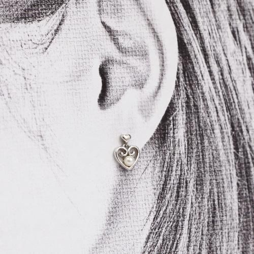 純度の高いシルバー925で仕上げたハートモチーフのピアスに、上品な淡水パールをあしらいました。