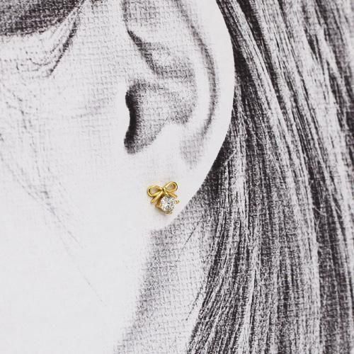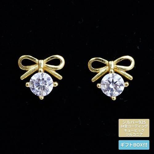 世界中で愛される本格シルバー925に14金でコーティングして仕上げたリボンモチーフのピアスに、キラキラのジルコニアが揺れる上品でかわいいピアスです。