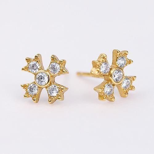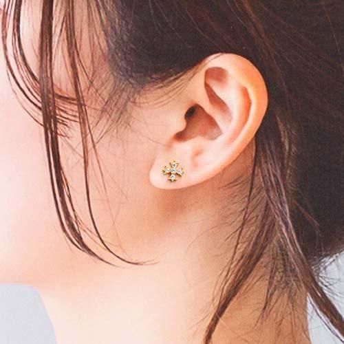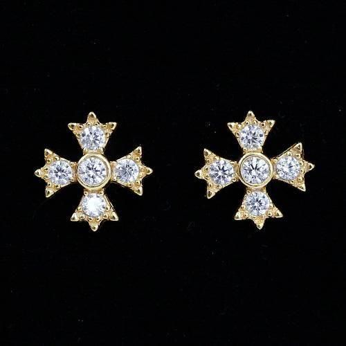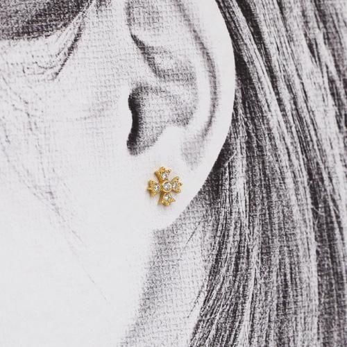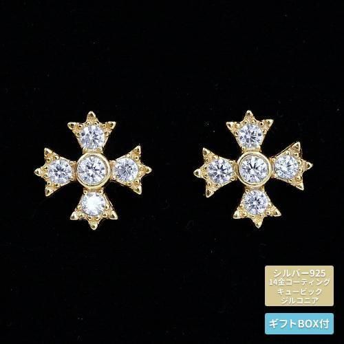 世界中で愛される本格シルバー925に14金でコーティングして仕上げたクロスのモチーフにキラキラのジルコニアがヨーロッパ風でかわいいピアスです。
